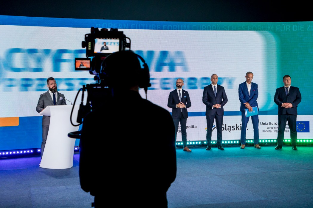 Europejskie Forum Przyszłości to nowe wydarzenie w kalendarzu największych imprez społeczno-gospodarczych w Polsce, które po raz pierwszy odbędzie się w regionie. W konferencji dotyczącej programu forum wzięli udział wicemarszałek Wojciech Kałuża, Jan Widera, prezes Stadionu Śląskiego, Janusz Michałek, prezes Katowickiej Specjalnej Strefy Ekonomicznej, Marcin Wilk, prezes Śląskiego Funduszu Rozwoju i Artur Kozłowski, dyrektor Sieci Badawczej Łukasiewicz – Instytutu Technik Innowacyjnych EMAG.